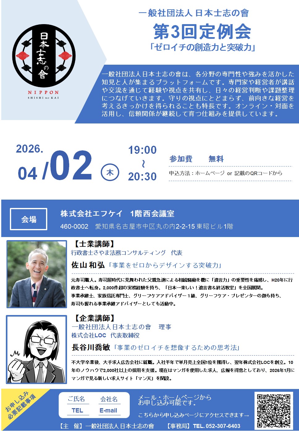 行政書士さやま法務コンサルティング 代表 佐山 和弘と株式会社LOC 代表取締役 長谷川 喬敏が講師となり、様々な視点からテーマに基づいた実践的な内容をお伝えしていきます。